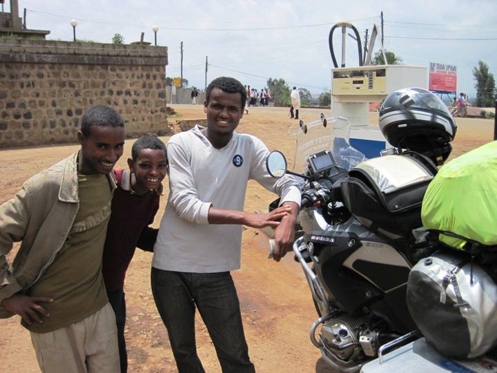 An hour later, I stopped in Debre Markos and refueled. I finally managed to get Lukas on the line and we had a laugh at my start to the day… I assured him that all was well, and then spent time talking to the three young guys who worked at the service station…