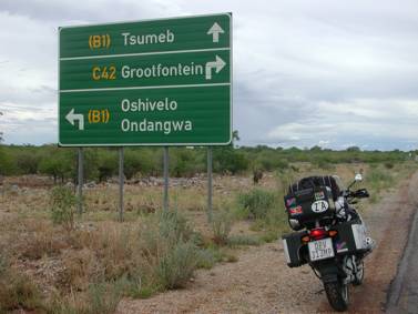 I was faced with two options to get to Grootfontein from Otavi. The obvious route lay 90km to the east of my present position, but the cloud build-up in that direction made me head further north to Tsumeb, in an attempt to skirt the rain which was obviously falling along the B8 highway to the east of us… It meant an additional 35km, but after the distance I had already ridden today, that did not faze me at all…