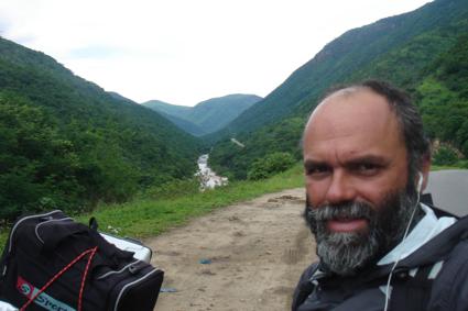 The road through the mountains in this national park, hugs the edge of river, following its twists and turns, squeezed between it and the steep mountain slopes on either side. Thick bush covers the gentler slopes, and streams run off the mountain and across the road to the river beyond. This makes for tricky riding as the road surface is constantly changing from dry to wet and back again. And of course, there are also potholes to contend with… I enjoyed the ride, filming long sections of it with my hand held Sony camera. When I watched the film later, I was amazed that I had ridden these stretches with only one hand on the handlebars. Scary footage…!! Silly boy…!!!