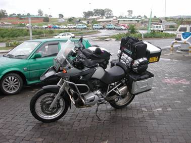 I arrived at Hendrik’s house in the suburb of Kabega at a little after 5.00pm. I got off the bike, exhausted and relieved to have made it there without any major hassles. The bike handled very well in the wet, and I was now used to the weight and could manoeuvre the bike in tight situations without too much difficulty. With all my kit hanging in the garage to dry, I dragged myself toward the nearest bathroom and had a hot shower… I then settled down to enjoy the hospitality of the Verwey Family, whisky clasped in left hand, while my right administered small doses of nicotine to my frazzled nervous system…