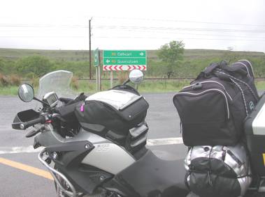 While Stewart dozed, I began lugging my gear out to the bike and tying everything down. Light drizzle accompanied me whilst I was doing this and I briefly considered whether or not I should kit up with my rain suit or not. I finally packed it away and decided to chance it… I left the lodge at 8.15am, having said my goodbyes to Stewart and Luke, and promising to visit Stewart’s pub, “The Overdraft” in Macgregor on my future travels…