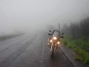Just then a road sign loomed out of the mist, which had me in gales of laughter, so much so, that I decided enough was enough, and pulled over to reset my brain. The sign in question warned of kudu’s leaping across the road with gay abandon…. I found this extremely funny, considering the conditions I was riding in… I now had to keep an eye out for a leaping kudu as well!!!! I took the following photograph while recovering my mental equilibrium, somewhere on the Nico Malan Pass…