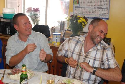 Hendrik and I struggle with an un-cooperative Christmas cracker…