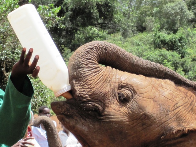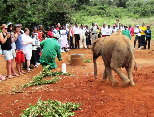 I watched spell bound as the first small herd of young elephant were led to a rope-ofF area to be fed their bottles of milk formula, specially imported from the U.K. … I have spent many hours close to wild elephant and have had a few scary moments with a few of them as well, but despite this, I was still awed by these amazing animals, and the sight of them being fed by their handlers…