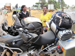 I sat the bike near the customs offices at the Dedza Border Post, having crossed over from Mozambique just moments before… I was looking for the lady that Peter had arranged to assist me with the border formalities… I took my helmet off, unplugged the I-pod, and watched the pandemonium around me… Just then, two women came dashing up to me, waving frantically as they ran…