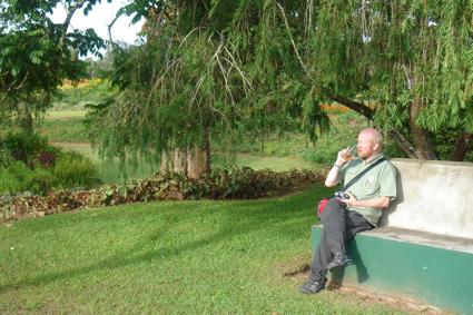 Allan, in a quiet moment of contemplation in the gardens of the Mzuzu Sunbird Hotel…