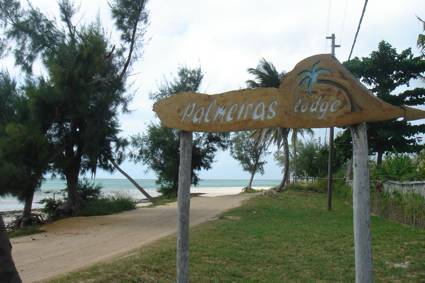 The entrance to Palmeiras Lodge, with the sea and the beach just across the road in the background…