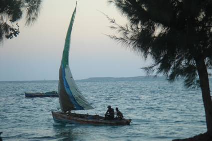 A fishing dhow glides silently past the entrance to the lodge in the late afternoon, barely a few metres offshore…