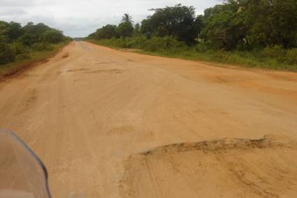 Every two or three hundred metres, a section of road akin to the surface of the moon, would come into view… I was on and off the throttle constantly, changing up and then down through the gears again, running off the road onto the sandy verges on occasion… All in an attempt to avoid any further damage to the bike. I was concerned that my front shocks had taken too much of a beating over the last few thousand kilometres, and was still nursing my front brakes from the incident in Tanzania… I would hate a mechanical fault to bring my journey to a pre-mature end, especially now that I was in touching distance of the finish…