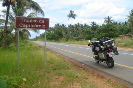 A short distance south of Massinga, I crossed the Tropic of Capricorn for the second time on this trip, the first being just south of Rehoboth on the road to Windhoek, many weeks ago… I had been thundering along and could not stop in time to take a photo, as I was in a hurry to get to Windhoek to get the bike serviced… This time I stopped and took the photo below.