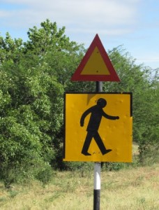 The first time I saw a sign indicating people might be crossing the road ahead, it was leaning at an angle which rather suggested that a dance party of some form was taking place around the next bend… I had already passed this particular sign and was wondering what it was all about, before I saw another which was standing vertically this time, and made a bit more sense… I should have taken a picture of the first one, but if you look at the one below, and imagine it tilted backwards, you will see what I mean by the caption…