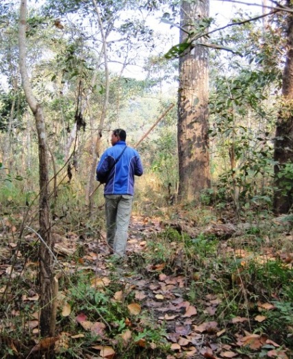Once we had left the river banks, we hiked through the wide flood plain and into what is referred to as the Buffer Zone, a protected part of the forest that villagers are allowed to graze cattle in at certain times, and collect fodder for them at others…