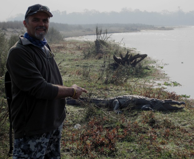 Our guide Isswar, exhibits the Nepali Tiger Stick Mk IV (Patent pending). Personally I prefer the double- barreled Jeffrey's 458, or at the very least, a H & H 357 Magnum...