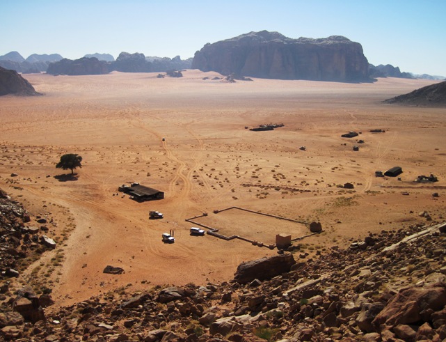 The best view of our camp was from a distance... I climbed up onto the rocky ridge behind the camp to look over the desert around me...