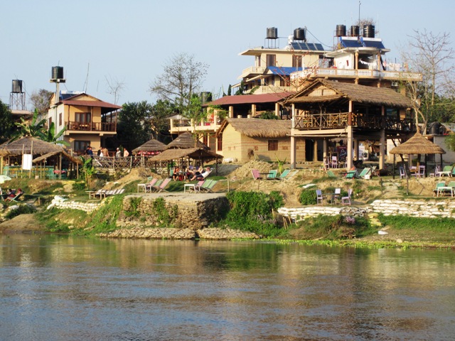 The River Side Hotel as seen from the southern bank of the Rapti River... A great place to kick back and relax...!!