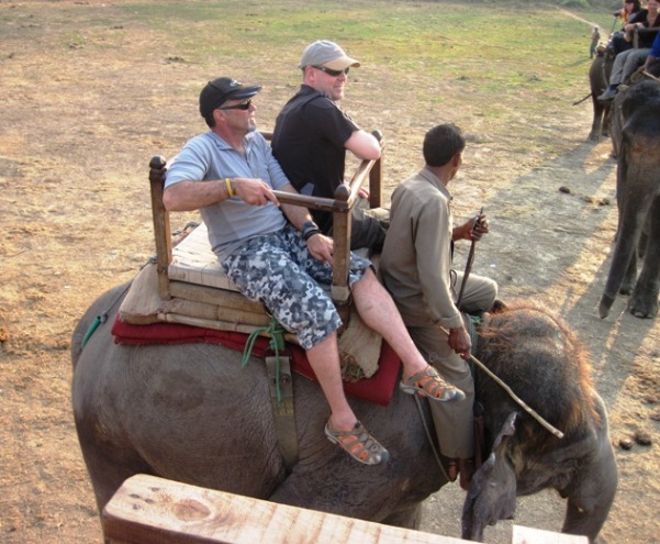 Knowing that the nearest proctologist was probably miles away in Kathmandu, he refrained from beating the elephant for the remainder of our safari…