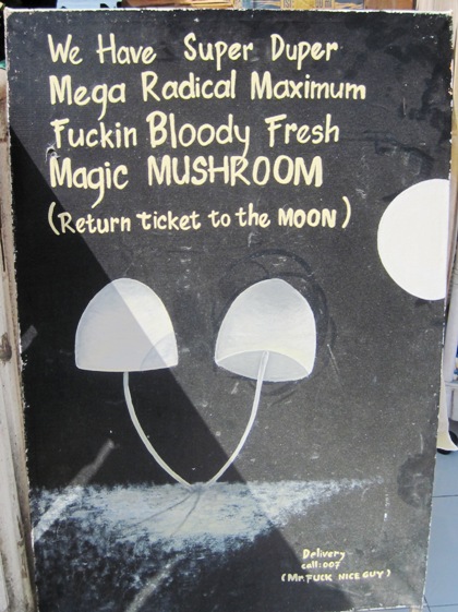 From under the counter appeared a small plastic container, in which small quantities of mushrooms had been wrapped in individual pieces of paper. The smiling shopkeeper then put one of these little parcels into a blender, went to the drinks fridge and returned with a tin of Red Bull…