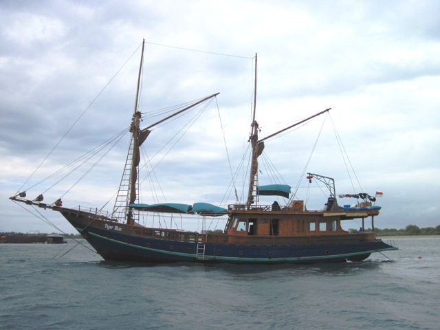 We stayed close inshore, passing Padang Bai and Candidasa, and then with the Agung Volcano rearing out of the clouds on our left, turned east and began the crossing to Lombok… The seas in the Lombok Strait were even more mountainous than those that had been pounding the shores of Bali, and I thought it best at that point not to mention to Patti that the ocean floor lay over 1200 metres below us…!!