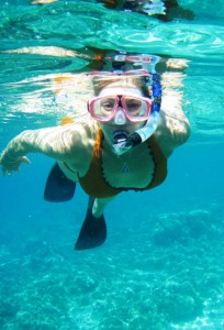 In water no deeper than our waists, I helped Patti get herself “organized” before we began swimming out among the glass bottomed boats and other skiffs anchored offshore…