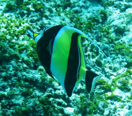 With my trusty Canon D10 camera, I was able to dive down and snap away at the fish that came close enough to be photographed… Although the reef had been damaged by the many boats that anchored here on a daily basis, the fish had clearly decided that it was still worthwhile hanging about…!!