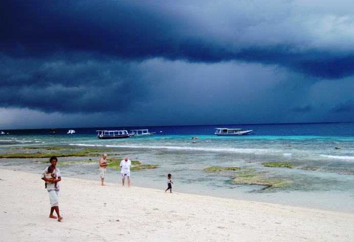 We sat watching the sky, trying to predict whether or not it would rain, and luckily, the fairly strong wind that was blowing, moved the heavier clouds over towards Lombok, where the higher elevations were already receiving rain…