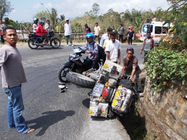Ha…!! His passenger lost both flip-flops, two toenails, his glasses, and about half a pint of blood…!! He’ll also be taking his food through a straw for a few days…!! More details on the “incident at Bajawa” later in the blog…!! Cheers, R.
