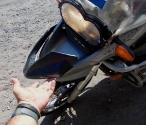 Oh boy not what you need starting out the second half of your epic journey… However we are very glad to hear that you and the Big Fella came out with only a few bumps and bruises… Travel safely there is still half the world out there waiting for you guys to pay them a visit!