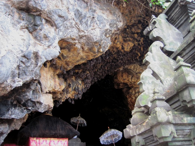 Dressed in sarongs with accompanying sashes, we strolled up to the front of the temple to get a closer look at the thousands of bats that hung from the ceiling of the cave…