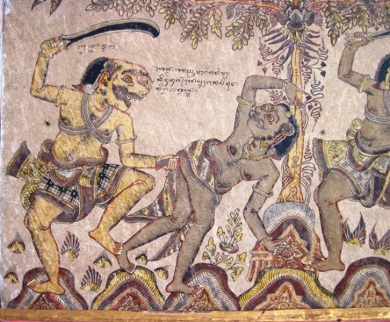 These paintings depict rather graphic images of ancient Hindu history and the battles fought between their deities…