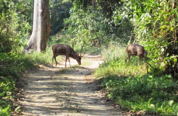 Finally....!! A pair of short-sighted Spotted Deer stood still long enough for us to take a quick photo...!!