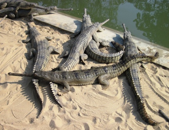 To alleviate the intense boredom, we stopped at a crocodile farm to see the endangered Gharial Crocodile... At least they couldn't run away...!!