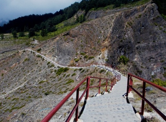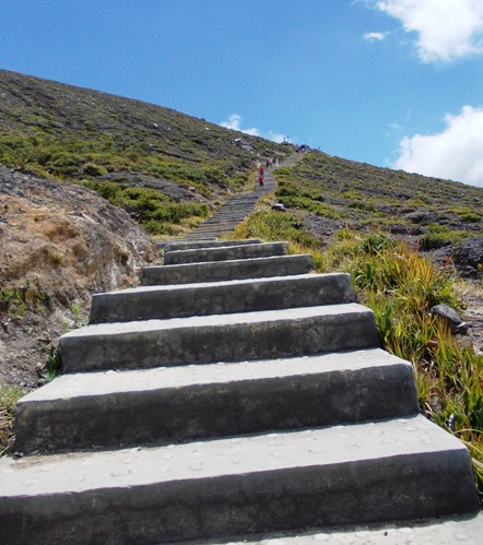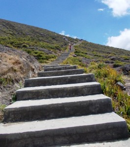 I left the Big Fella in the parking area at the base of a steep series of concrete steps that wound away into the distance above me, and began the half hour walk up to the volcano rim…