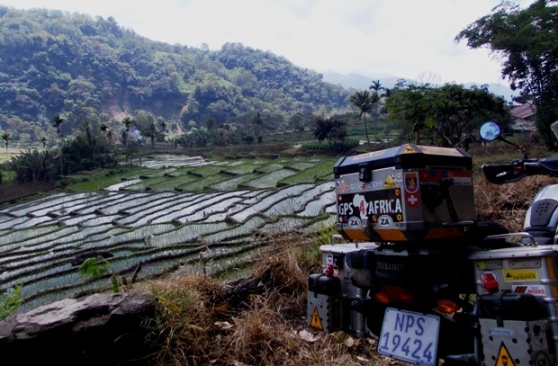 Just before the town of Moni, a right hand fork in the road, leading up to Kelimutu National Park, took us along a 13 km stretch of very narrow and winding road, past small villages with their irrigated rice fields and up into the clouds that hung above the surrounding mountains…
