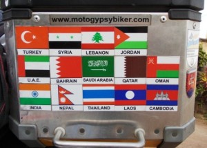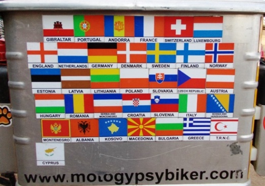 It was then that I noticed a few of my flag stickers were missing…!! My Spanish and Belgium flags had been stripped off my left pannier, and some well meaning gentleman of what I can only assume to be Muslim persuasion, had seen fit to remove my Israel sticker from my top box…!!