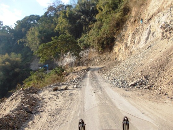 Another stretch of road under repair, this one on the way to Moni... With a very deep ravine to my left, there was little margin for error...!!