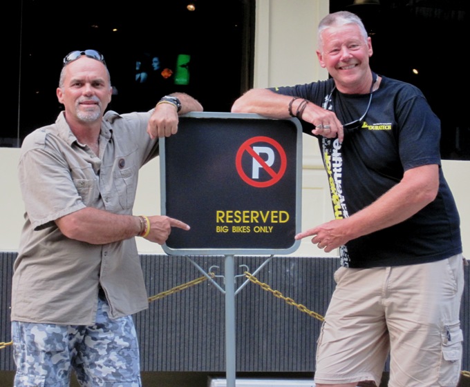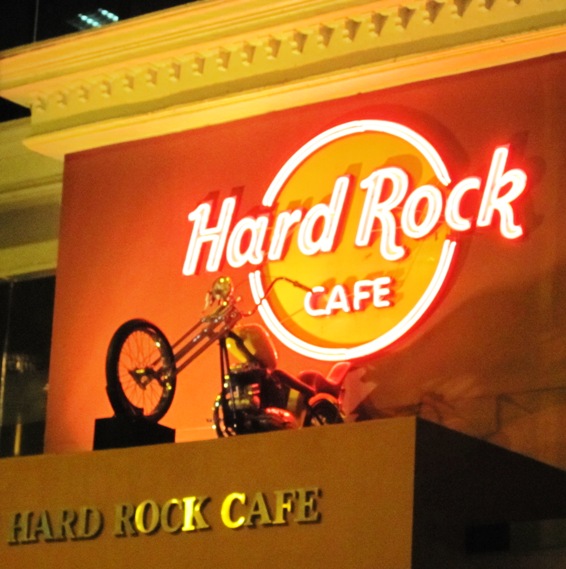 We figured that the club members would want to see the bikes we were touring on, and after arranging a taxi to take Phil and Chenty to the Hard Rock, Trevor and I fired up our bikes and headed out into the evening traffic to meet them there…