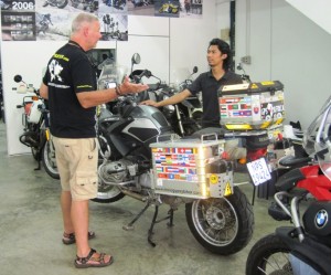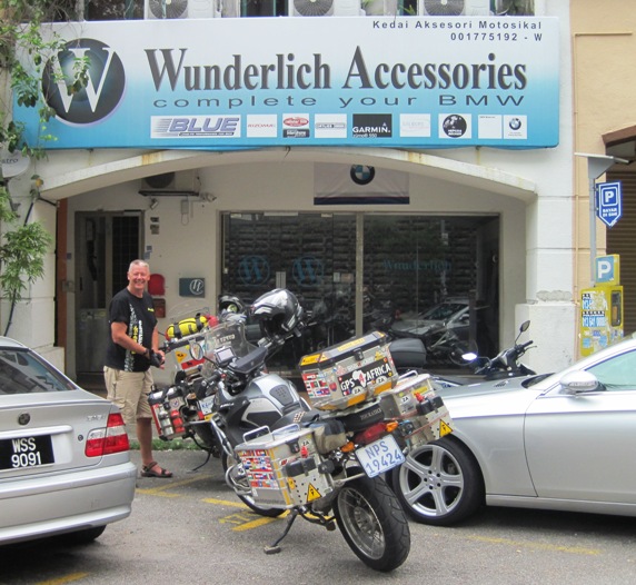 We also met Mr. David Chew of Wunderlich Accessories and a fortuitous meeting that turned out to be…!! He advised us that he had a small workshop where he serviced all makes of BMW bikes, and very kindly invited us to bring our bikes around the following day to give them a “check-up”… We accepted this very kind offer with alacrity, and made arrangements to meet him the following day…