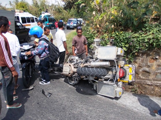 At that point a few of his family members began arriving, all shouting at the tops of their voices and pointing fingers at me… I smiled back at them, and put my arm around the scooter rider, telling them all to calm down and speak one at a time… One guy then demanded that I pay Rp 1 000 000 to the rider… I shook my head and decided to take a firm stand rather than buckle under the pressure they were trying to exert on me…