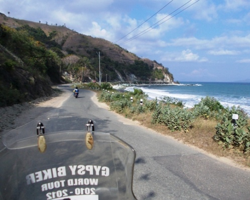 I rode on through Boawae, past yet another volcano, this one known as Ebulobo, and then climbed a final range of mountains before coming out on the southern coastline… The road ran along the sea shore all the way to Ende from this point, at times so close to the water’s edge, that sea-spray was flung across the surface of the road by the light winds that were blowing…