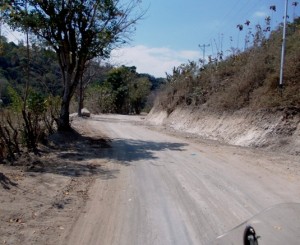 For the next three hours I battled through steep sections of narrow road that in many places had been washed away by previous heavy rains, and were reduced to patches of tar and gravel… We tip-toed through the corners, the back wheel often threatening to slide out from under me…