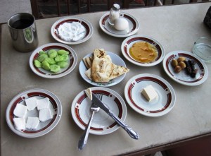 One morning (I forget which one…!!) after returning from another walk through the ruins, I saw a windswept traveler sitting on the patio of my hotel, working his way through the many plates of a Syrian breakfast…