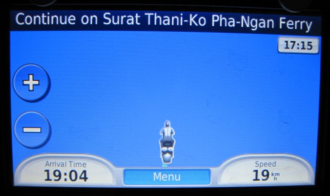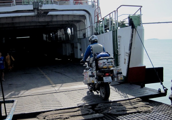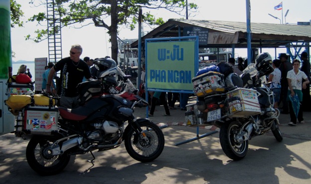 We arrived to find that luck was running with us, and managed to buy tickets on the last ferry leaving for Koh Panghan that day… We had covered more than 500 kilomteres since leaving Ban Krut, and after a very short wait, got our bikes onto the ferry…