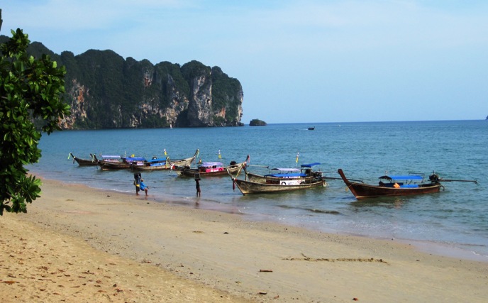 Ao Nang is not a bad place to spend a few days… It has loads of accommodation and restaurants that line the main road across from the long beach, which attracts many tourists and locals alike… Long tail boats take snorkelers and divers out to the nearby islands for day trips from this beach, while for longer trips, you need to go back a few kilometres to where the little harbour is…