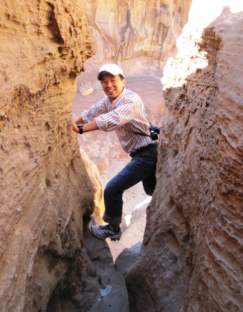 Rory and I climbed up a rocky pathway to get on top of one of the rock arches in Wadi Rum Desert, Southern Jordan....