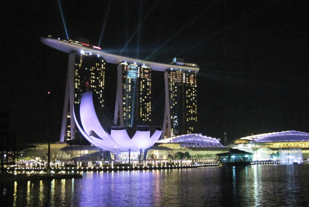 We bid Rory goodbye as the sun was going down, and then had a light supper before walking down to the Esplanade Park on the edge of Marina Bay…
