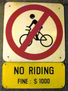 Wherever we walked in Singapore, we saw signs warning people not to break any of the many laws that make this such a “fine” city…