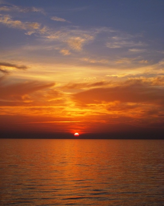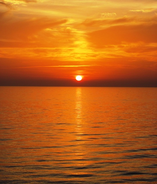Then I caught that special moment between night and day… Up above me the sky was still blue, and yet far out over the water the sun was retreating, like a fireball into the sea, turning my world upside down…