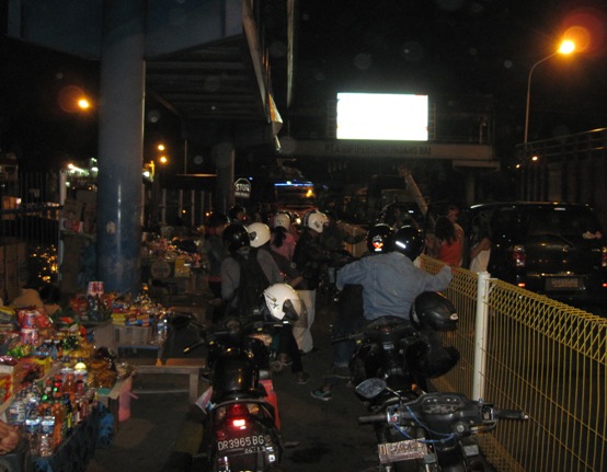 For the most part, the road to Padangbai was slick and wet, but thankfully almost deserted at 11.00 pm… That was more than I can say for the main road that ran through the centre of Ubud…!! Crowds still thronged the sidewalks at this late hour, the many restaurants lining the street, filled to capacity…