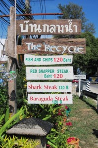 We settled on “The Recycle”, which was little more than a two-roomed shack perched on the edge of a small stream that flowed under the main road and into the bay… The owners had collected flotsam off the beach and used that to decorate the place, and had made a reasonable job of it too I might add…