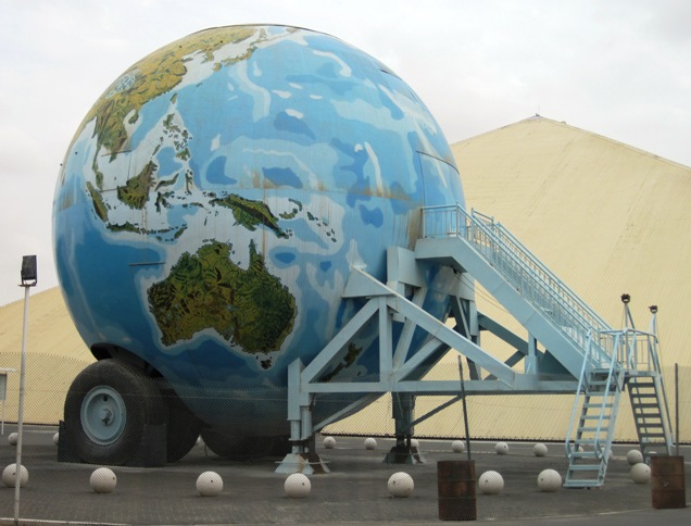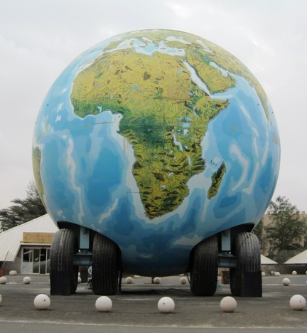 As I rode up to the parking area, I could see part of an enormous globe, and as I got closer, I saw that it was mounted on a trailer…!! This globe houses ten bedrooms, would you believe…!!